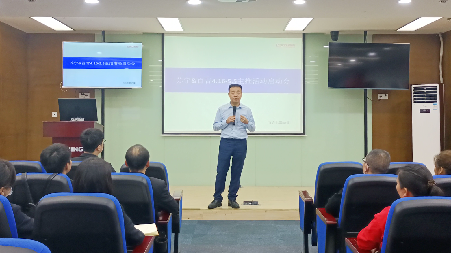 蘇寧&百吉4.16-5.5主推活動(dòng)啟動(dòng)會(huì)在解放碑蘇寧易購營銷中心召開。蘇寧重慶大區(qū)總經(jīng)理-劉其志,重慶蘇寧廚衛(wèi)經(jīng)營部采銷總監(jiān)-郭騏菘,重慶百吉廚電副總經(jīng)理-童強(qiáng),重慶百吉廚電KA銷售總監(jiān)-鄧躍參與了此次會(huì)議并發(fā)表講話,同時(shí)參會(huì)的還有蘇寧易購銷售督導(dǎo)以及百吉廚電銷售。會(huì)議重點(diǎn)講解蘇寧&百吉聯(lián)合主推活動(dòng)任務(wù),為迎接即將到來的五一小長假,百吉特推出大型促銷活動(dòng),此次會(huì)議明確了兩方銷售任務(wù),同時(shí)為蘇寧和百吉形成密切的合作關(guān)系發(fā)展定調(diào)。
