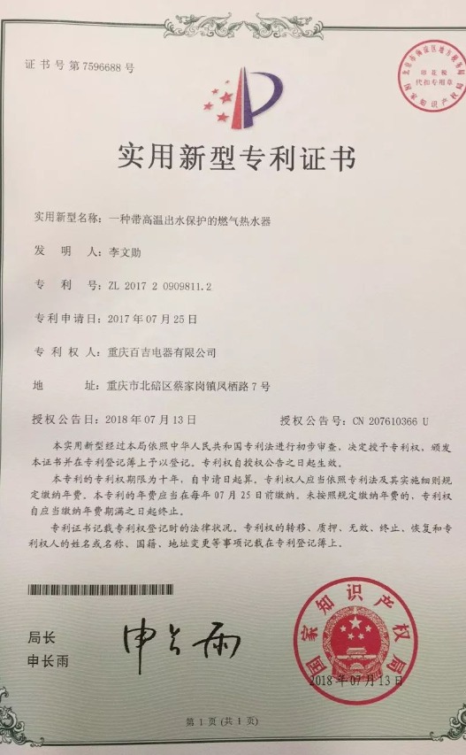 近日,百吉自主研發(fā)的多項(xiàng)技術(shù)通過了國家專利審查,喜獲授權(quán)!獲得專利的技術(shù)名稱分別是:一種高抗風(fēng)燃?xì)馊紵鳌⒁环N帶高溫出水保護(hù)的燃?xì)鉄崴鳌⒁环N浴缸淋浴雙模式的燃?xì)鉄崴饕约耙环N實(shí)現(xiàn)浴缸模式自動(dòng)關(guān)水的燃?xì)鉄崴鳌?/span>