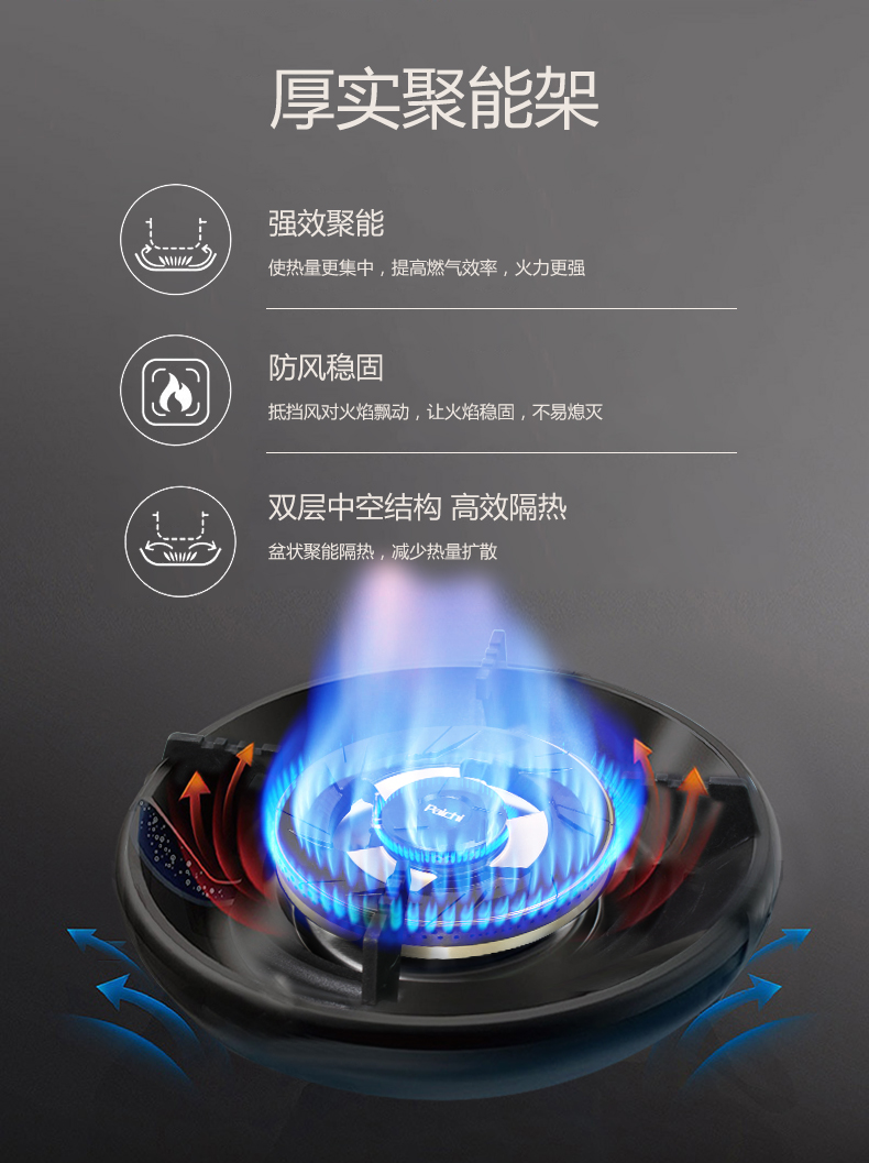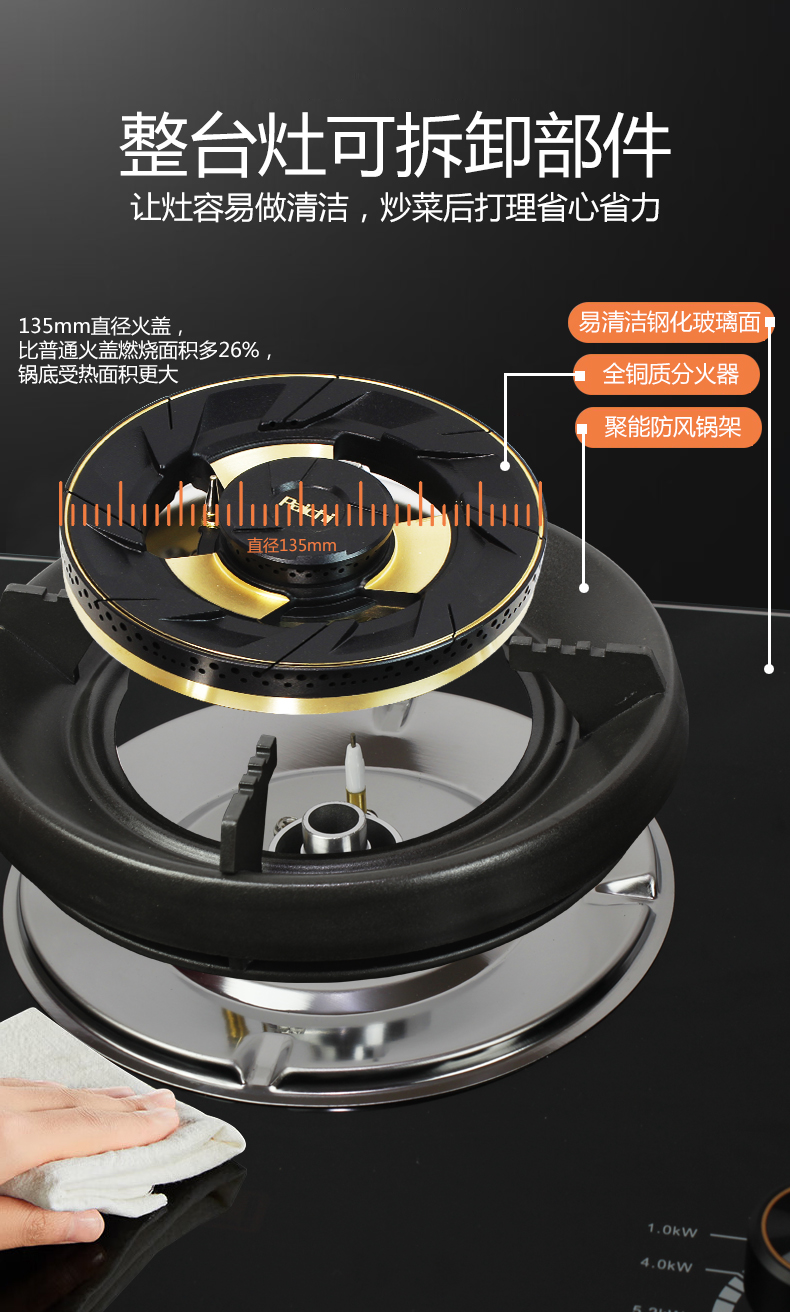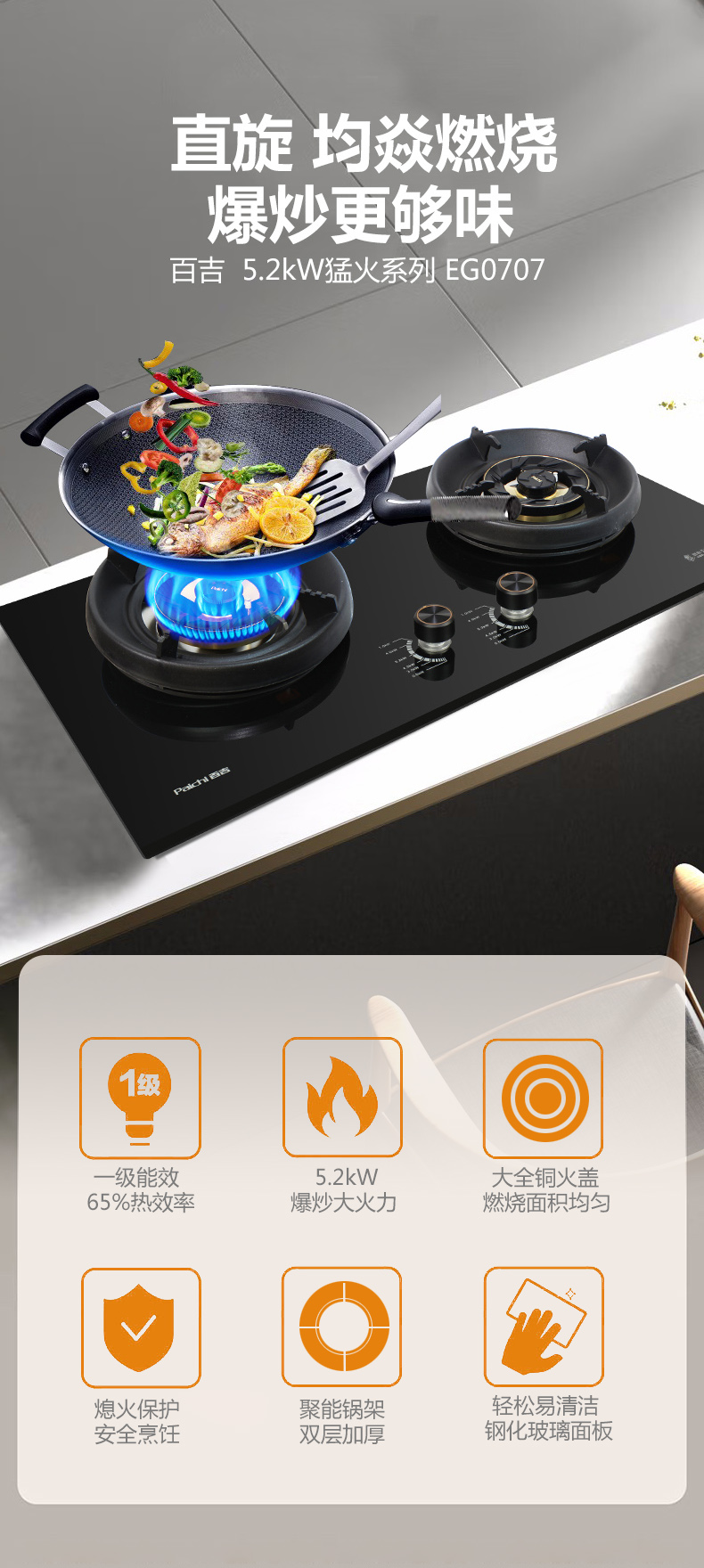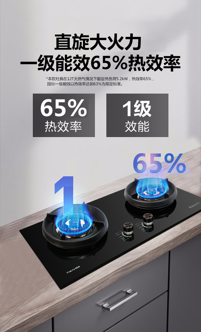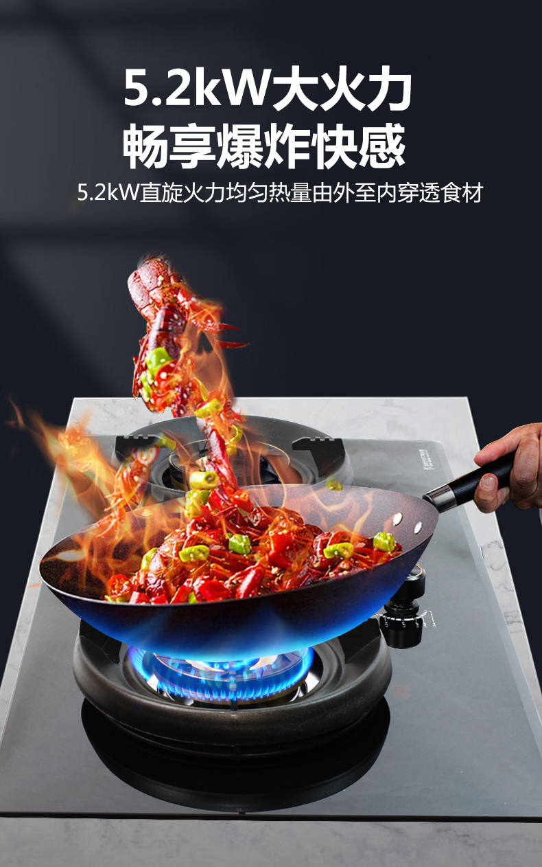直旋大火力,5.2kW聚能猛火灶,65%高熱效率,一級(jí)能效