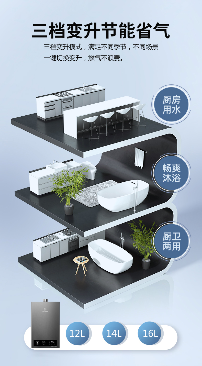 三檔變升,16升智能恒溫,無氧銅材質水箱