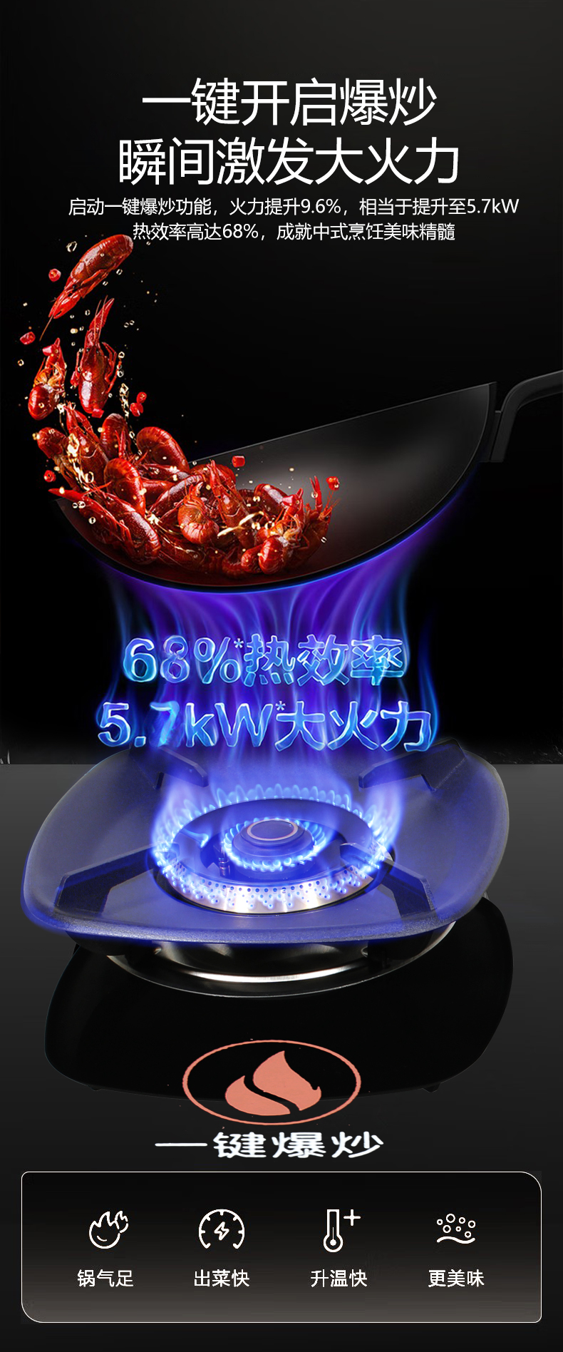 一鍵爆炒5.7kW大火力,68%高熱效率